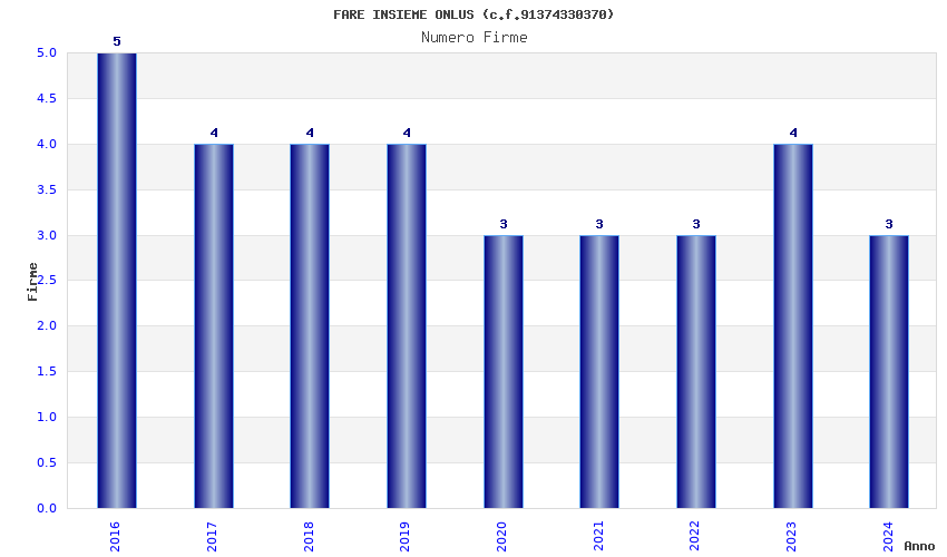 | Anno | Firme | Importi | Media | Naz. | Reg. | Prov. | Comu. |