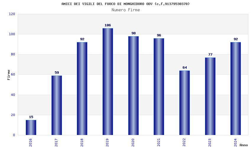| 2019 | 106 | 2.610,67 | 24,63 | 19.781 | 1.698 | 434 | 2 |