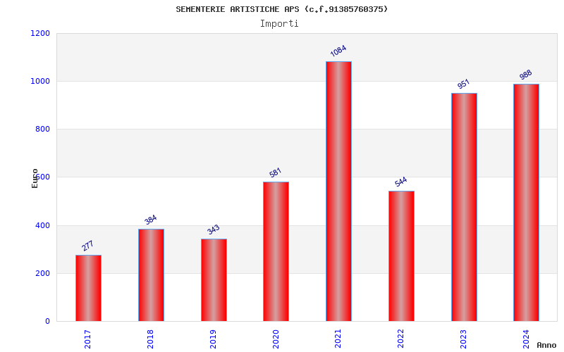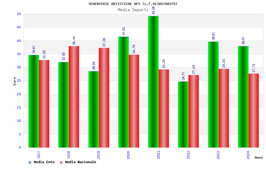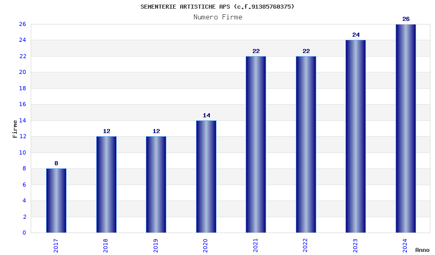 | Anno | Firme | Importi | Media | Naz. | Reg. | Prov. | Comu. |