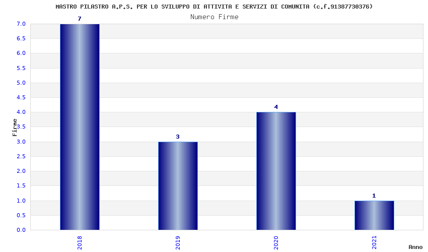 | Anno | Firme | Importi | Media | Naz. | Reg. | Prov. | Comu. |
