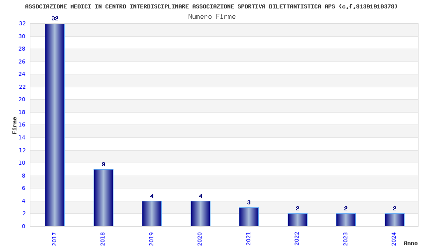 | Anno | Firme | Importi | Media | Naz. | Reg. | Prov. | Comu. |