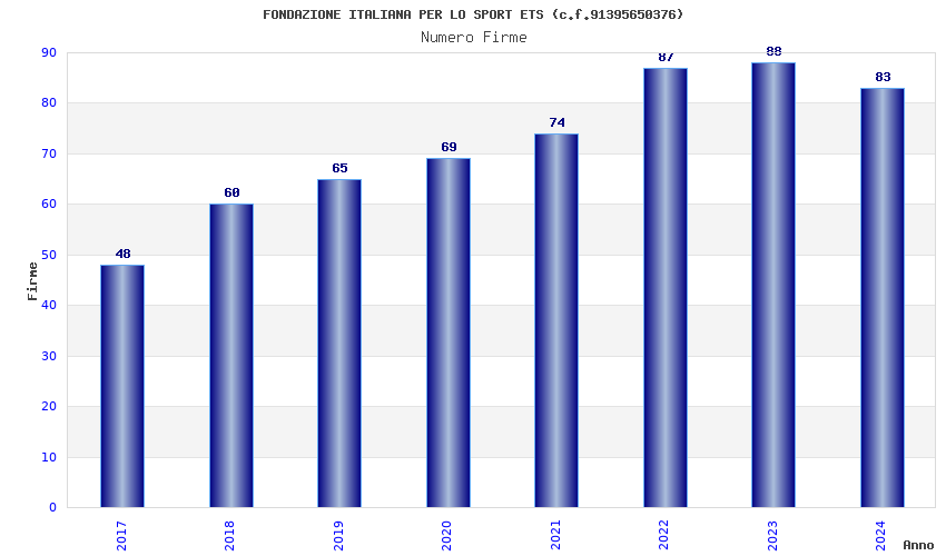 | Anno | Firme | Importi | Media | Naz. | Reg. | Prov. | Comu. |