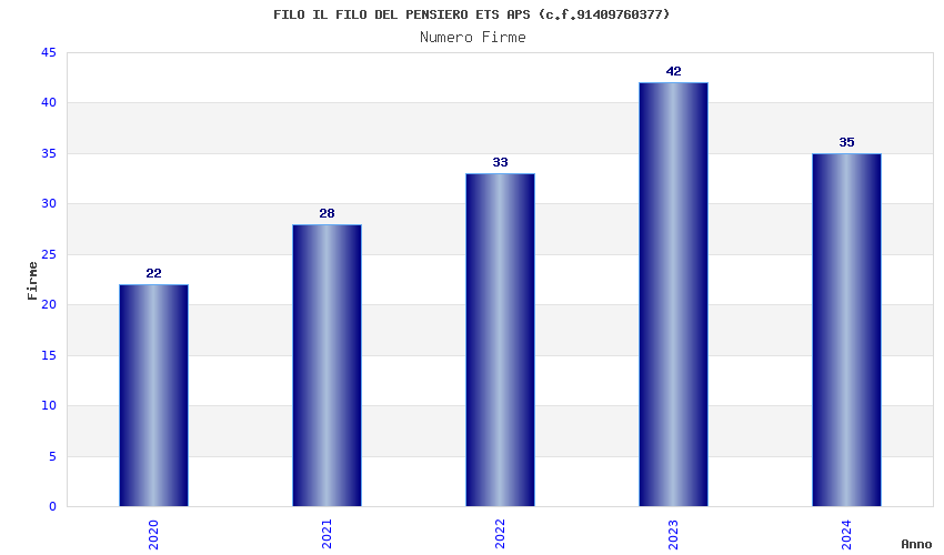 | Anno | Firme | Importi | Media | Naz. | Reg. | Prov. | Comu. |