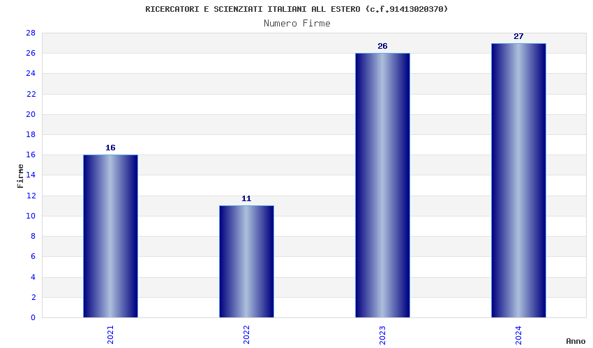 | Anno | Firme | Importi | Media | Naz. | Reg. | Prov. | Comu. |