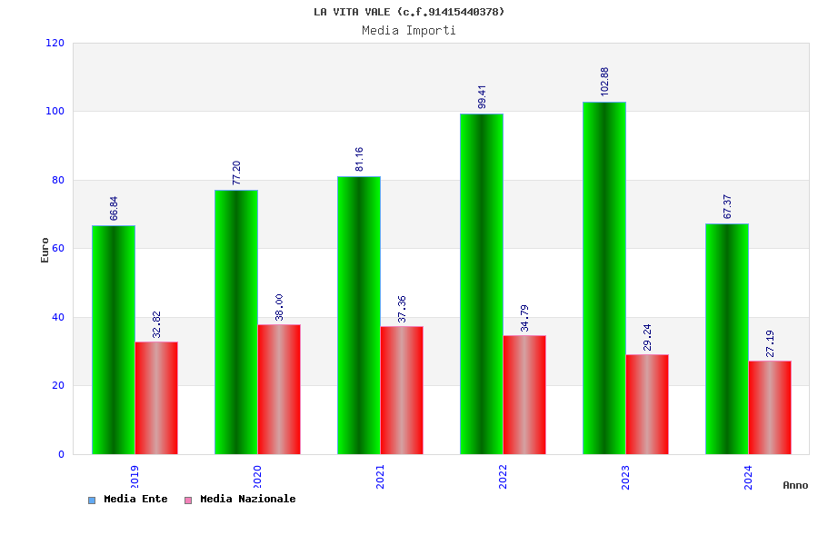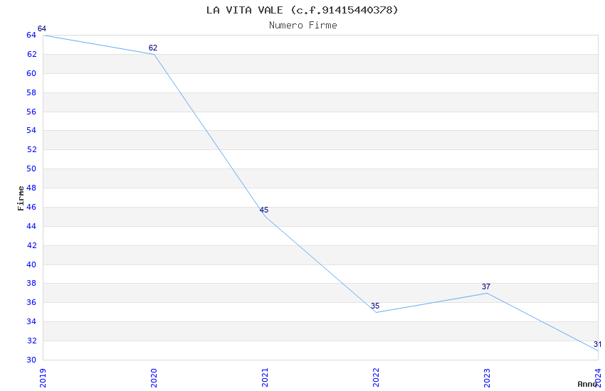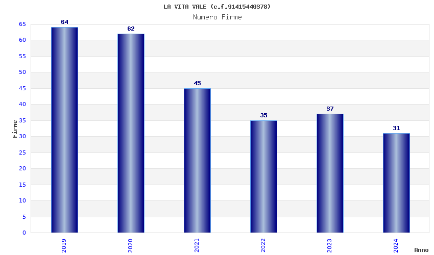 | Anno | Firme | Importi | Media | Naz. | Reg. | Prov. | Comu. |