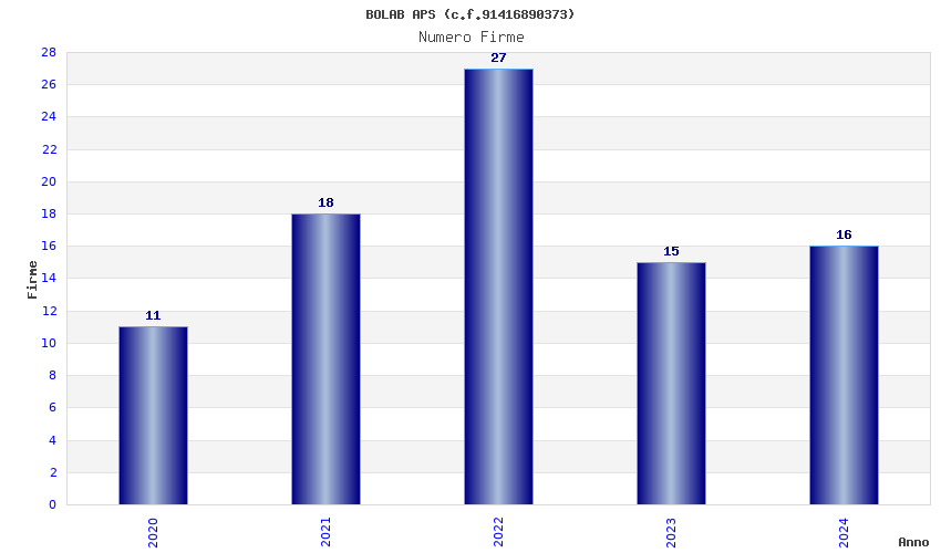 | Anno | Firme | Importi | Media | Naz. | Reg. | Prov. | Comu. |