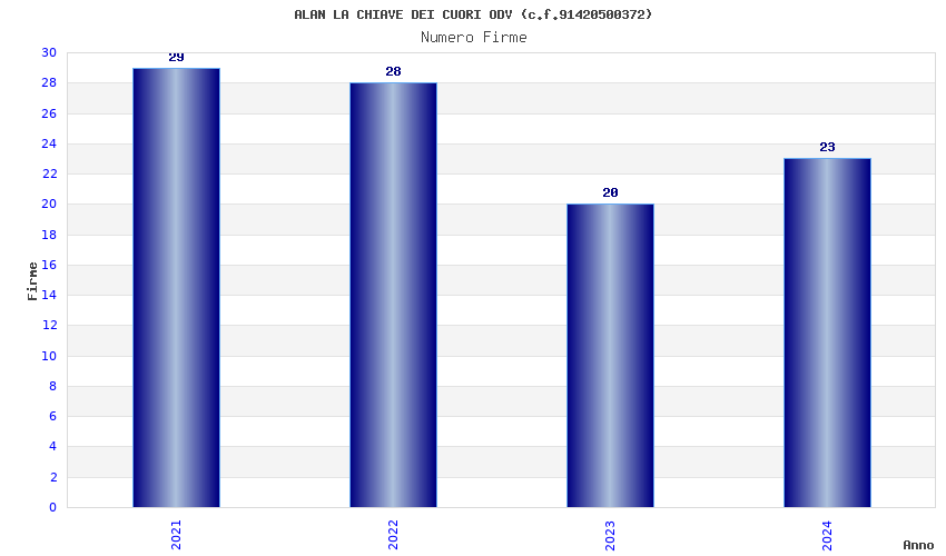 | Anno | Firme | Importi | Media | Naz. | Reg. | Prov. | Comu. |