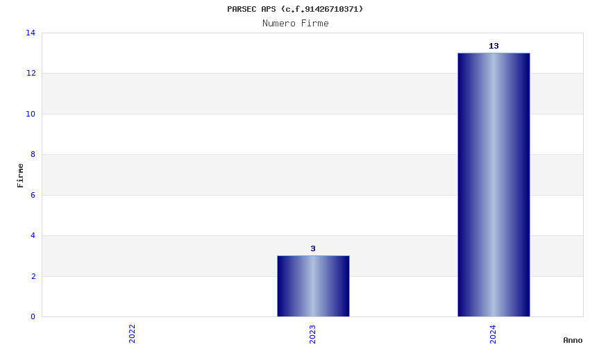 | Anno | Firme | Importi | Media | Naz. | Reg. | Prov. | Comu. |