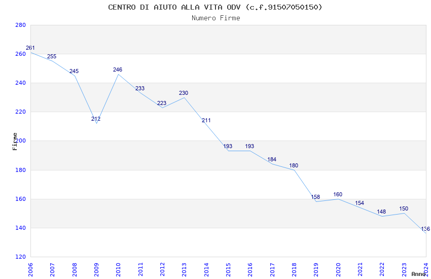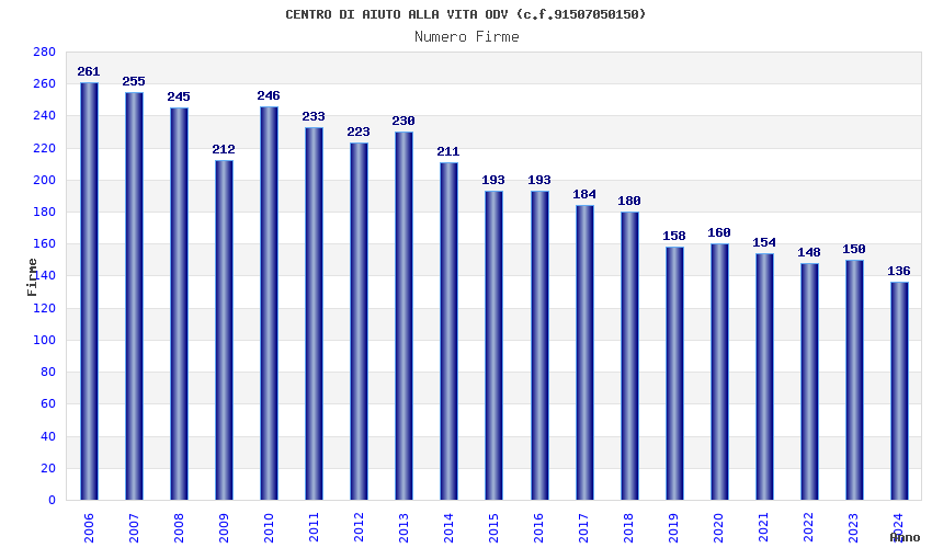 | Anno | Firme | Importi | Media | Naz. | Reg. | Prov. | Comu. |