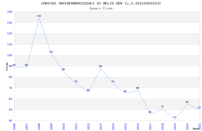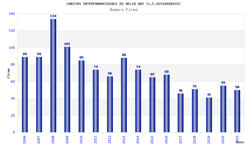 | Anno | Firme | Importi | Media | Naz. | Reg. | Prov. | Comu. |