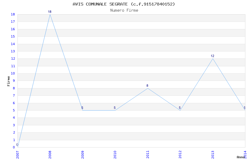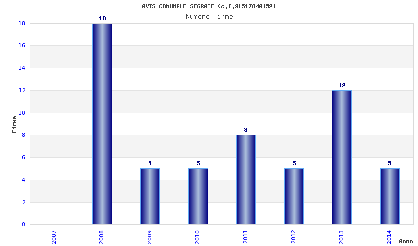 | Anno | Firme | Importi | Media | Naz. | Reg. | Prov. | Comu. |