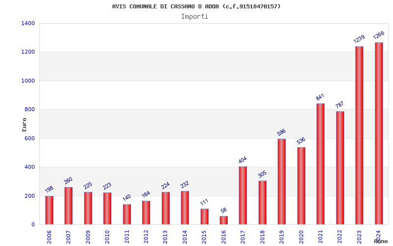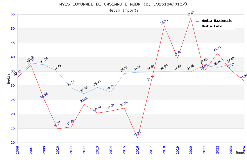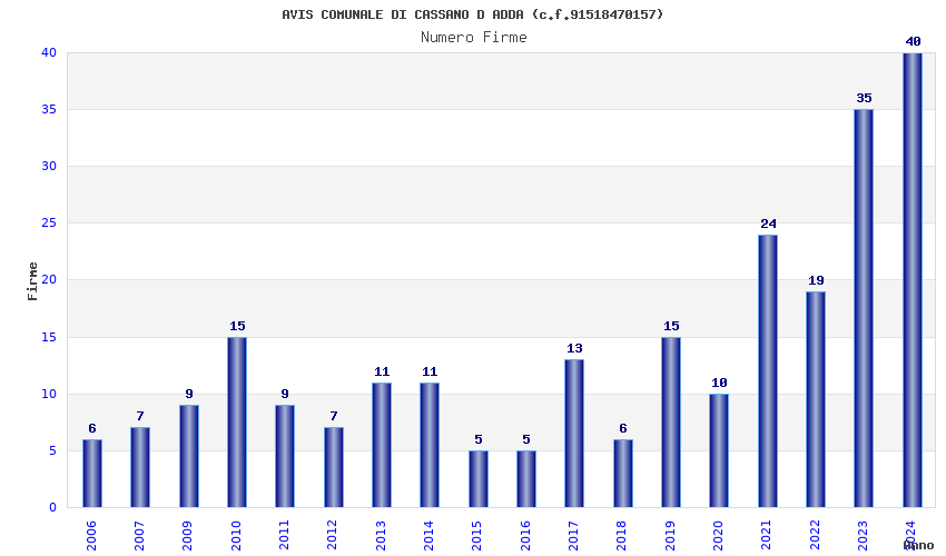 | Anno | Firme | Importi | Media | Naz. | Reg. | Prov. | Comu. |