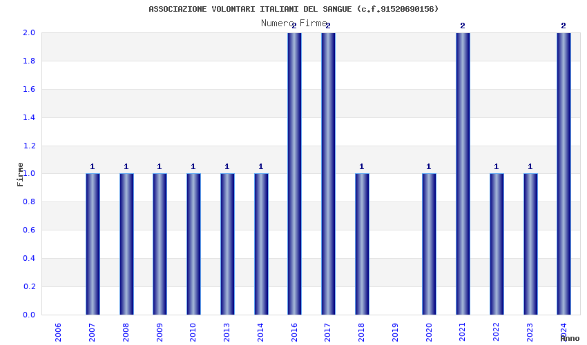 | Anno | Firme | Importi | Media | Naz. | Reg. | Prov. | Comu. |