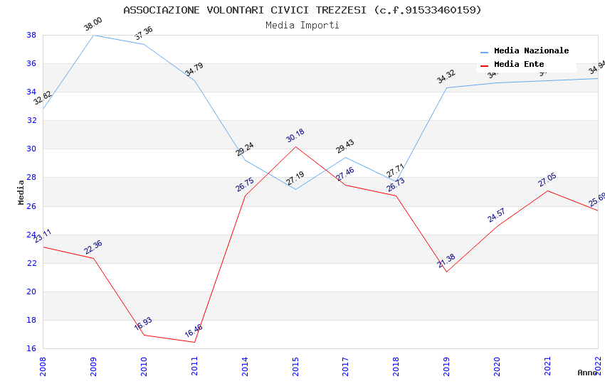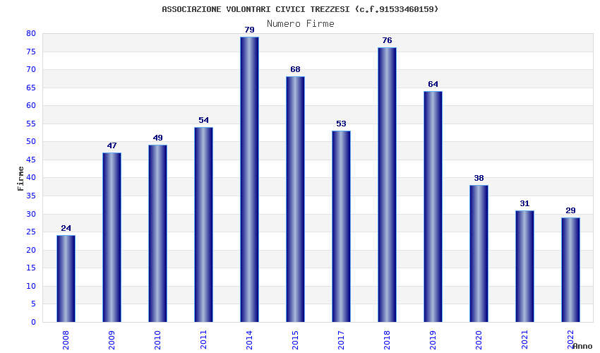 | Anno | Firme | Importi | Media | Naz. | Reg. | Prov. | Comu. |