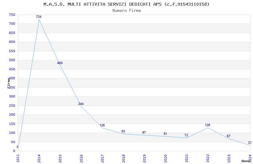 | 2014 | 724 | 10.931,40 | 15,10 | 4.654 | 1.144 | 564 | 2 |