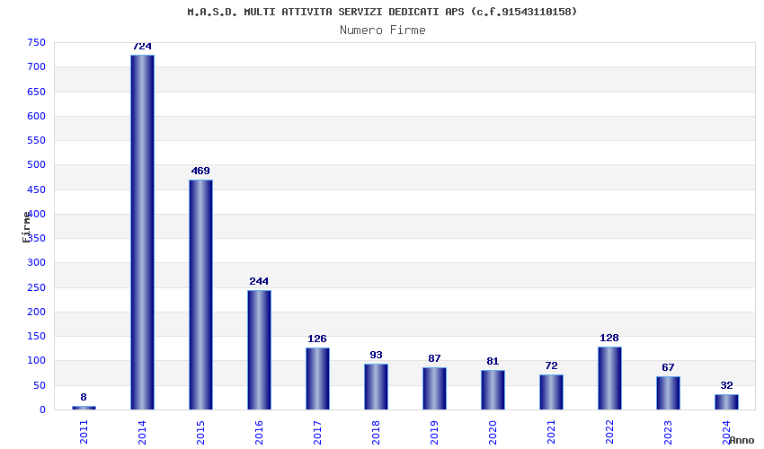 | Anno | Firme | Importi | Media | Naz. | Reg. | Prov. | Comu. |