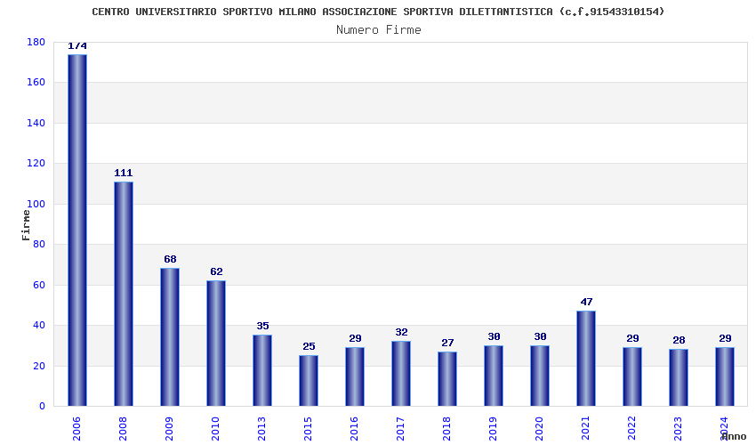 | Anno | Firme | Importi | Media | Naz. | Reg. | Prov. | Comu. |