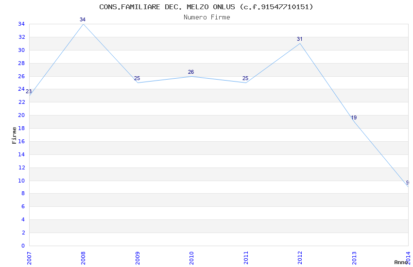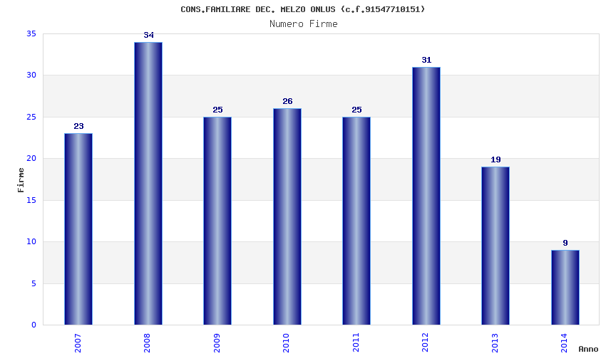 | Anno | Firme | Importi | Media | Naz. | Reg. | Prov. | Comu. |