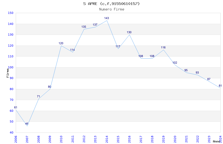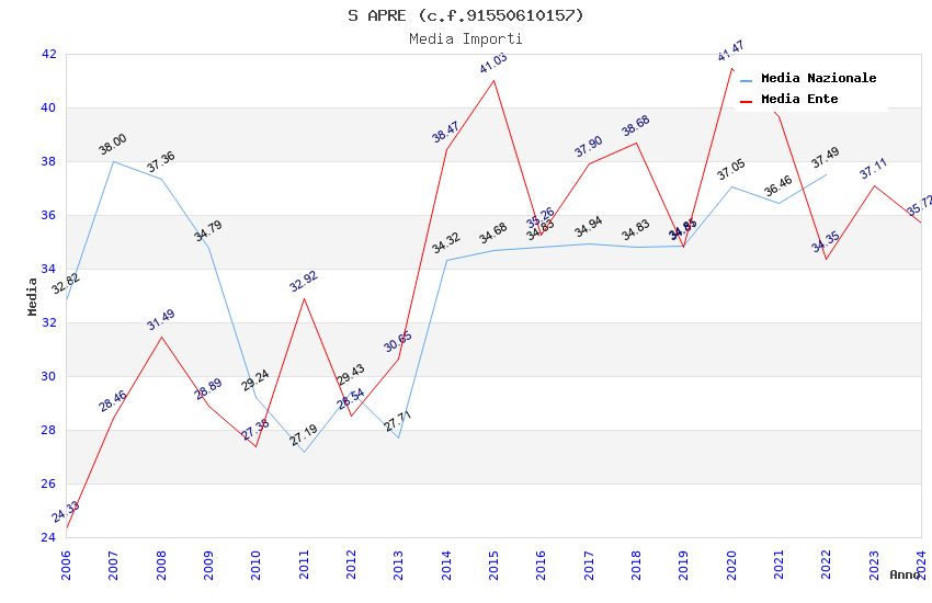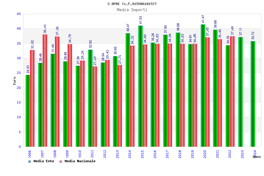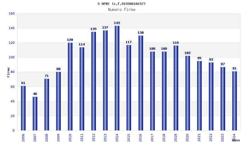 | Anno | Firme | Importi | Media | Naz. | Reg. | Prov. | Comu. |