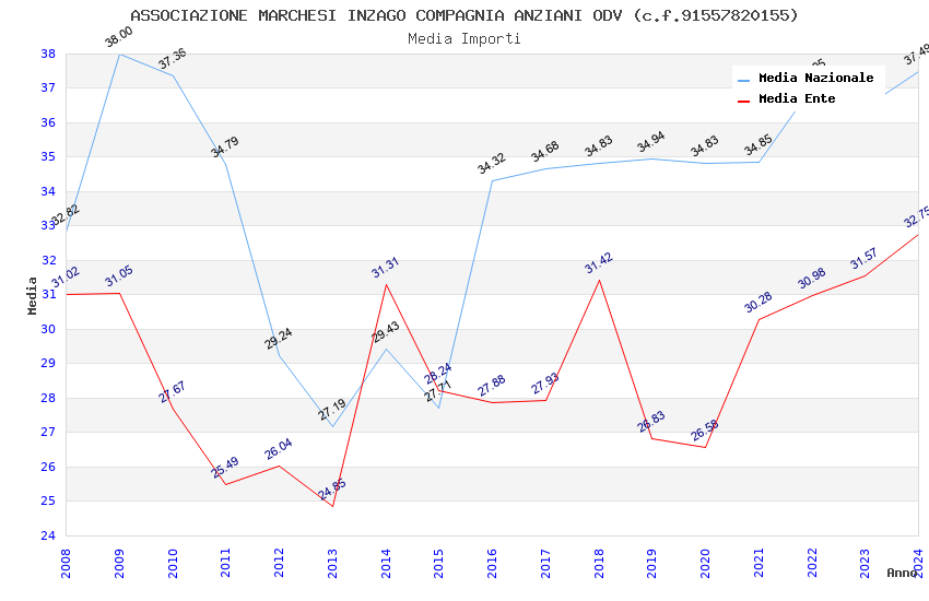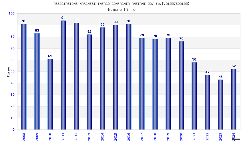 | Anno | Firme | Importi | Media | Naz. | Reg. | Prov. | Comu. |
