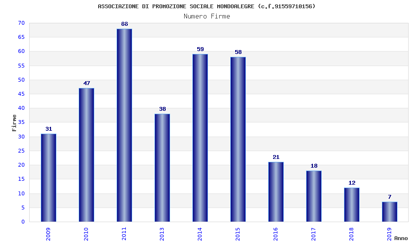 | Anno | Firme | Importi | Media | Naz. | Reg. | Prov. | Comu. |