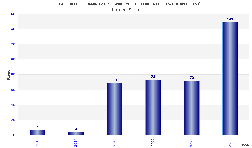 | Anno | Firme | Importi | Media | Naz. | Reg. | Prov. | Comu. |