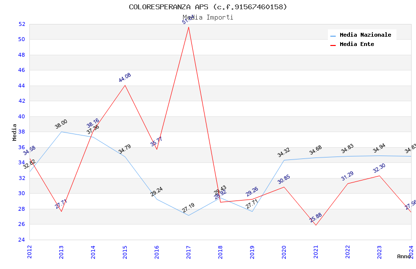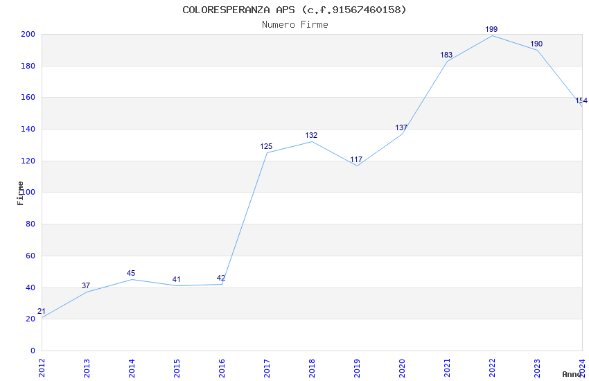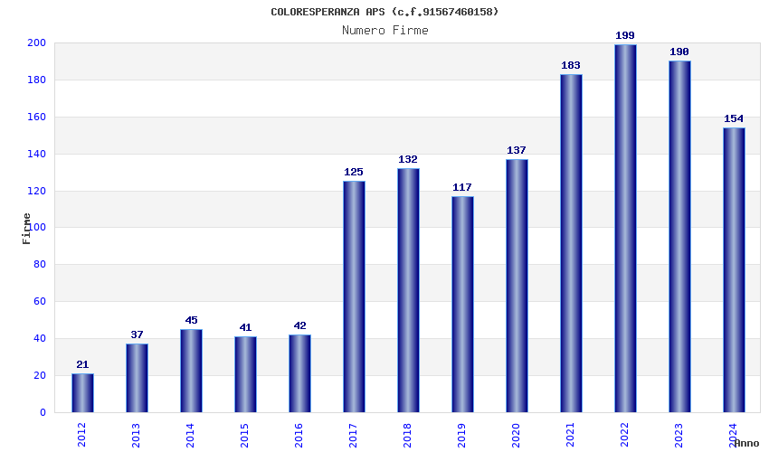 | Anno | Firme | Importi | Media | Naz. | Reg. | Prov. | Comu. |