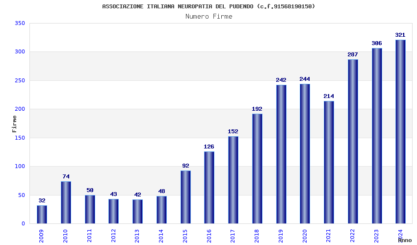 | Anno | Firme | Importi | Media | Naz. | Reg. | Prov. | Comu. |