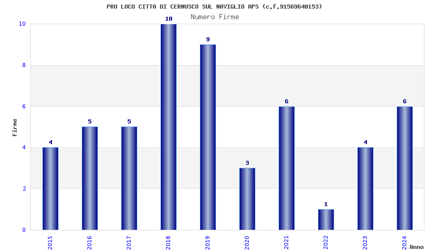 | Anno | Firme | Importi | Media | Naz. | Reg. | Prov. | Comu. |