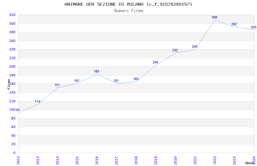 | Anno | Firme | Importi | Media | Naz. | Reg. | Prov. | Comu. |