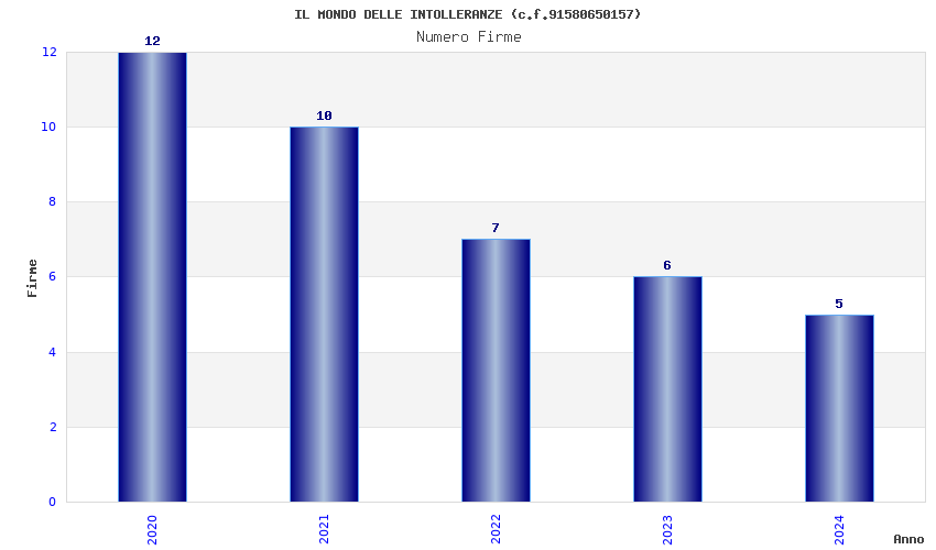 | Anno | Firme | Importi | Media | Naz. | Reg. | Prov. | Comu. |