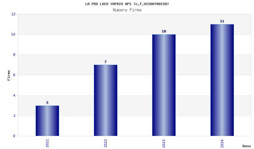| Anno | Firme | Importi | Media | Naz. | Reg. | Prov. | Comu. |