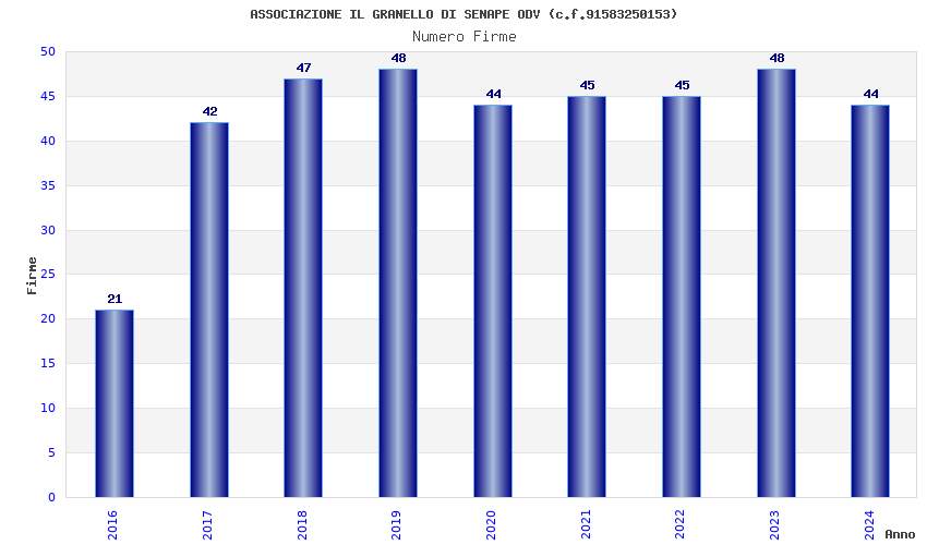 | Anno | Firme | Importi | Media | Naz. | Reg. | Prov. | Comu. |