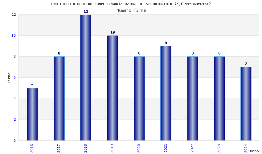 | Anno | Firme | Importi | Media | Naz. | Reg. | Prov. | Comu. |