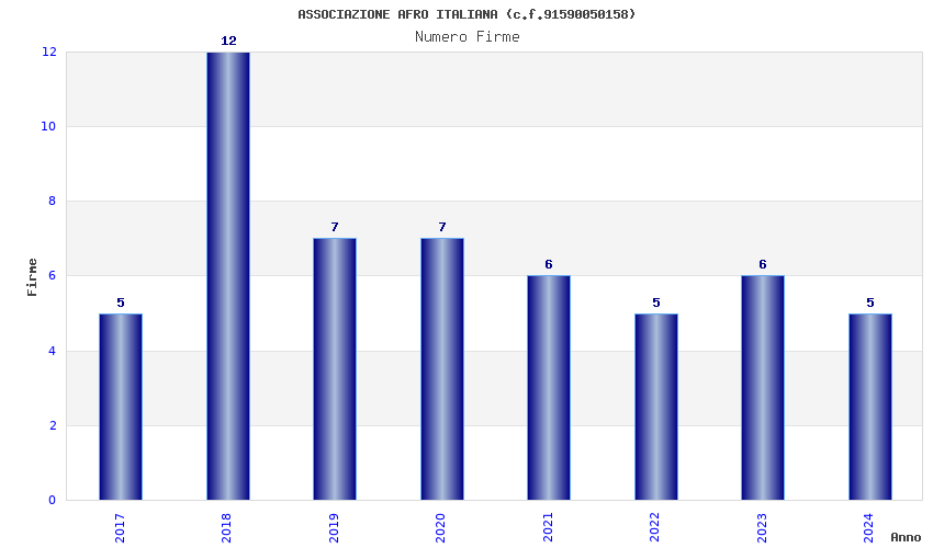 | Anno | Firme | Importi | Media | Naz. | Reg. | Prov. | Comu. |