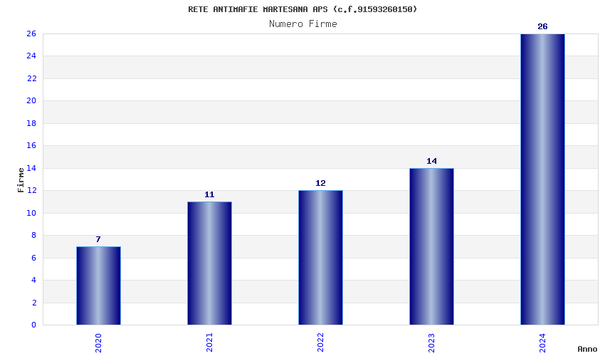 | Anno | Firme | Importi | Media | Naz. | Reg. | Prov. | Comu. |