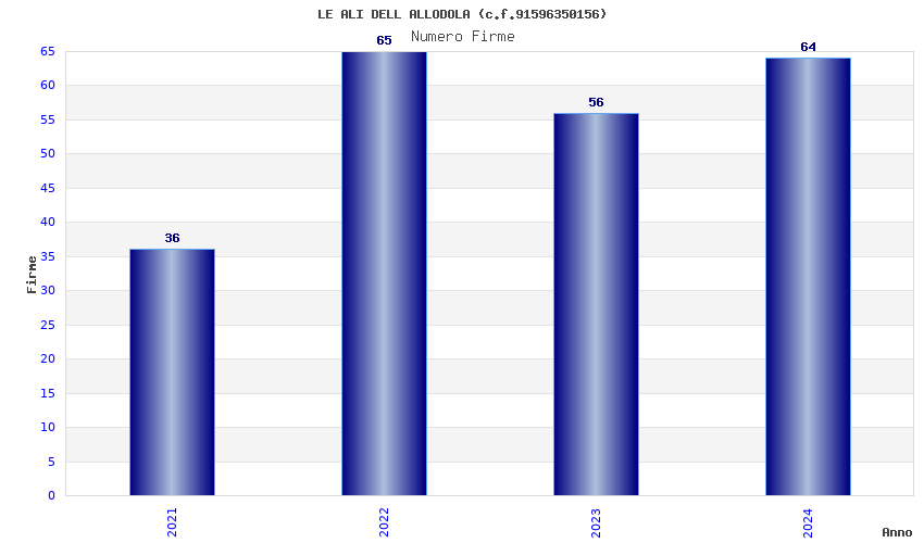 | Anno | Firme | Importi | Media | Naz. | Reg. | Prov. | Comu. |