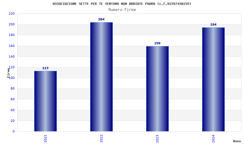 | Anno | Firme | Importi | Media | Naz. | Reg. | Prov. | Comu. |