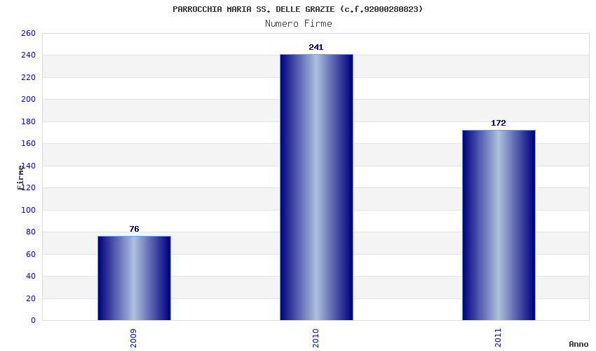 | Anno | Firme | Importi | Media | Naz. | Reg. | Prov. | Comu. |
