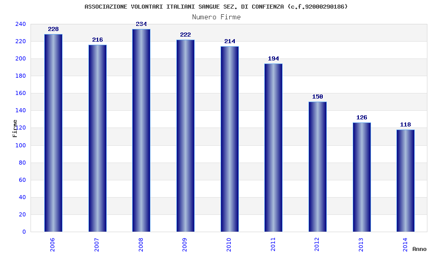 | Anno | Firme | Importi | Media | Naz. | Reg. | Prov. | Comu. |