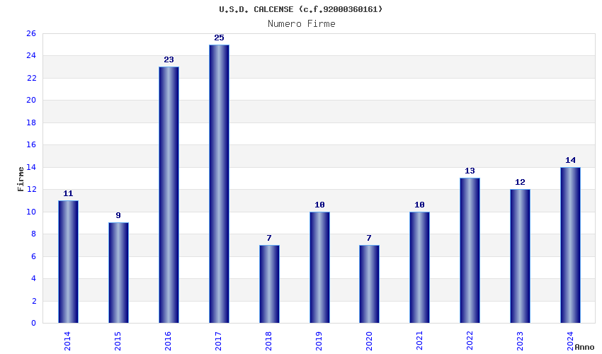 | Anno | Firme | Importi | Media | Naz. | Reg. | Prov. | Comu. |