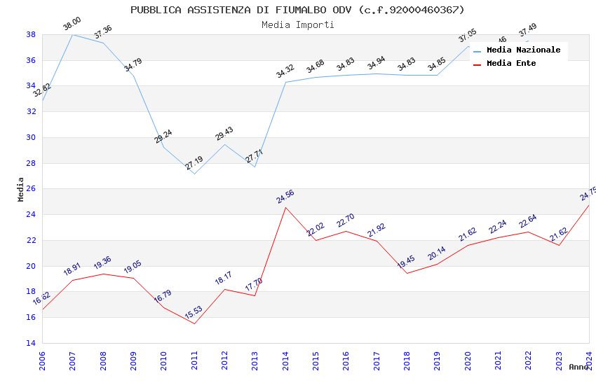 | Anno | Firme | Importi | Media | Naz. | Reg. | Prov. | Comu. |