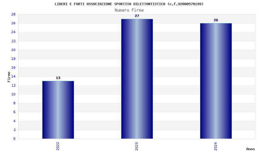 | Anno | Firme | Importi | Media | Naz. | Reg. | Prov. | Comu. |