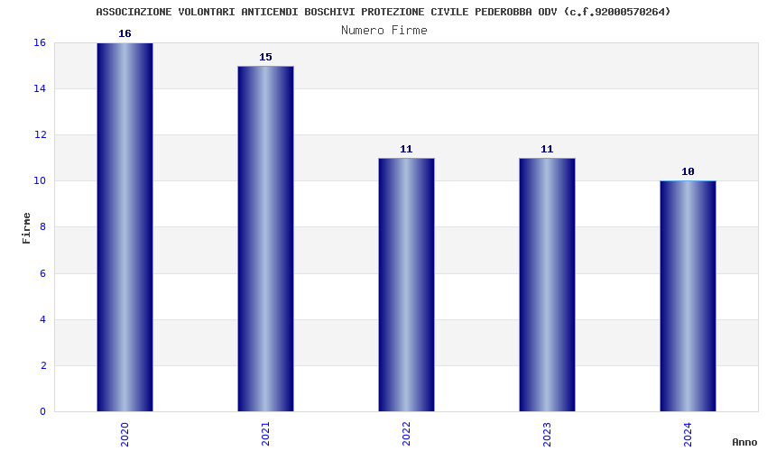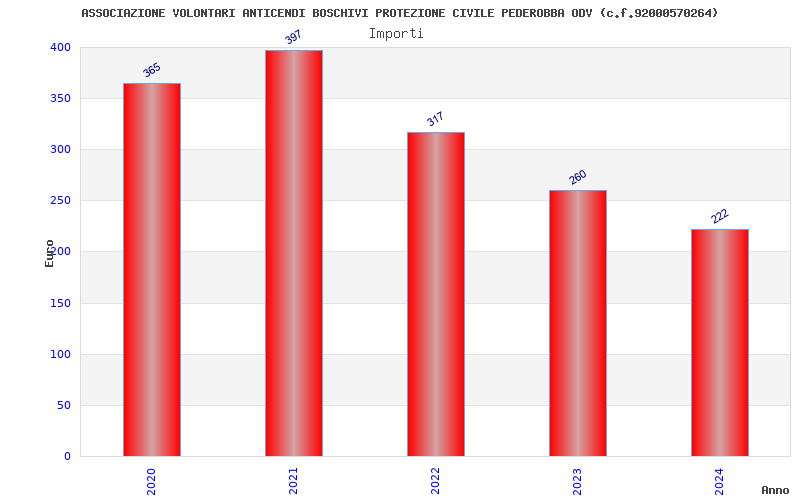 | Anno | Firme | Importi | Media | Naz. | Reg. | Prov. | Comu. |