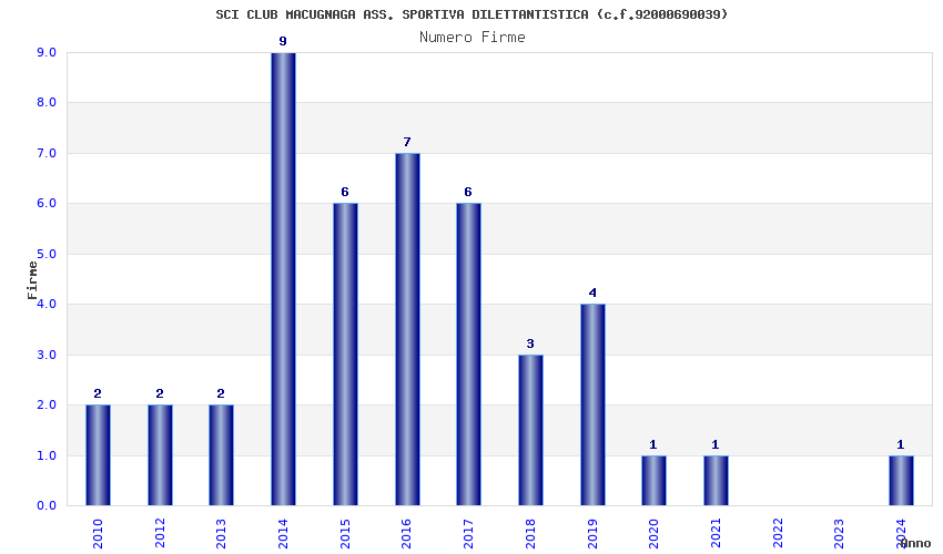 | Anno | Firme | Importi | Media | Naz. | Reg. | Prov. | Comu. |