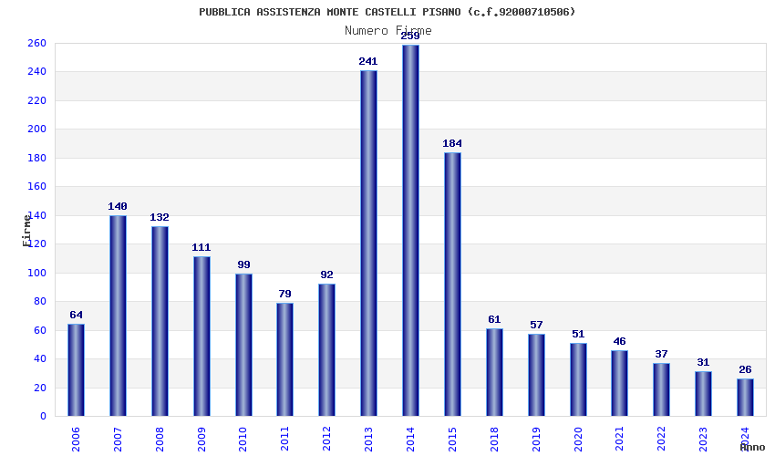 | Anno | Firme | Importi | Media | Naz. | Reg. | Prov. | Comu. |
