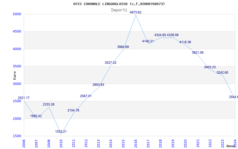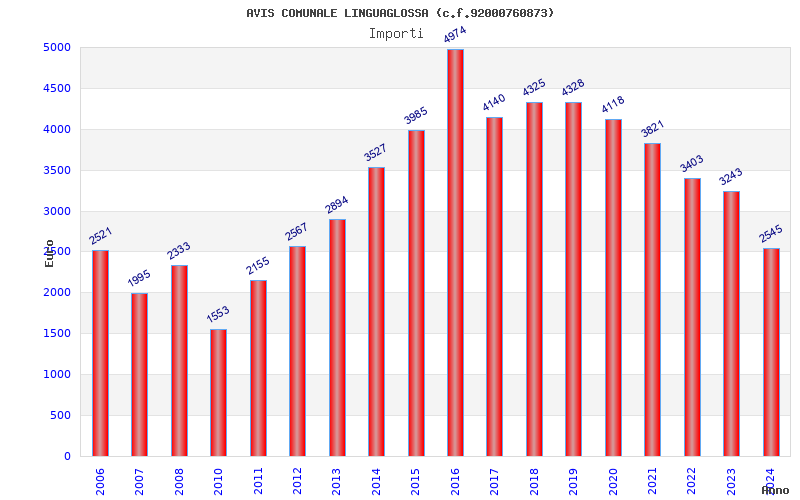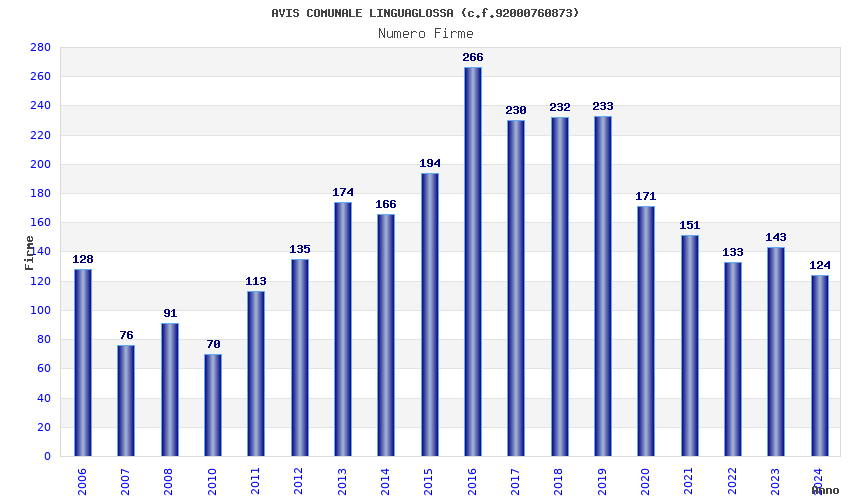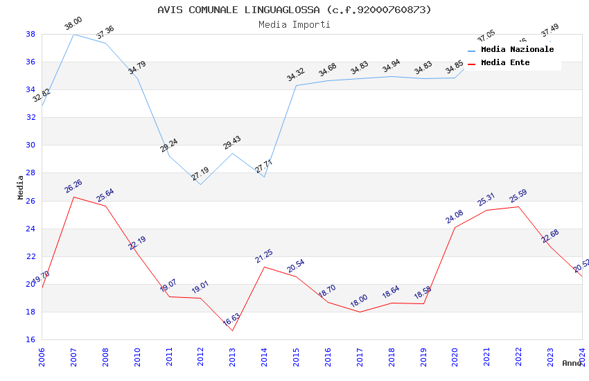 | Anno | Firme | Importi | Media | Naz. | Reg. | Prov. | Comu. |