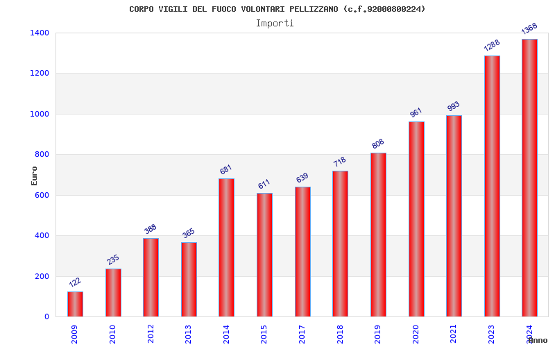 | Anno | Firme | Importi | Media | Naz. | Reg. | Prov. | Comu. |