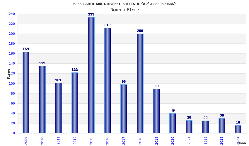 | Anno | Firme | Importi | Media | Naz. | Reg. | Prov. | Comu. |