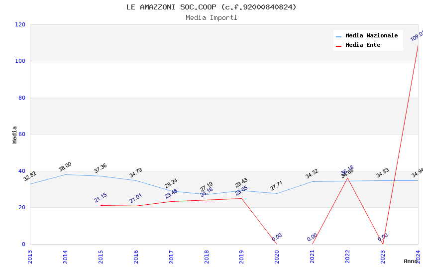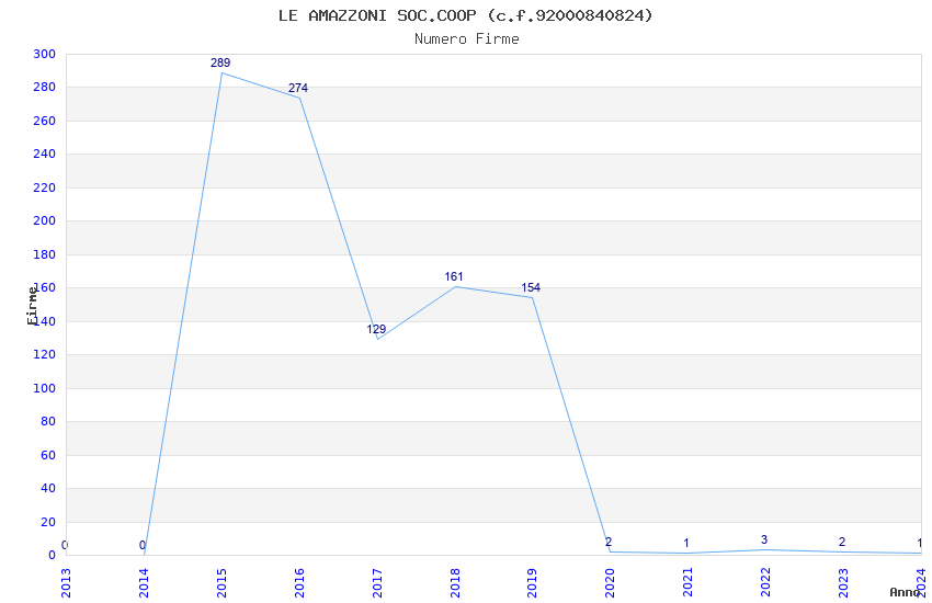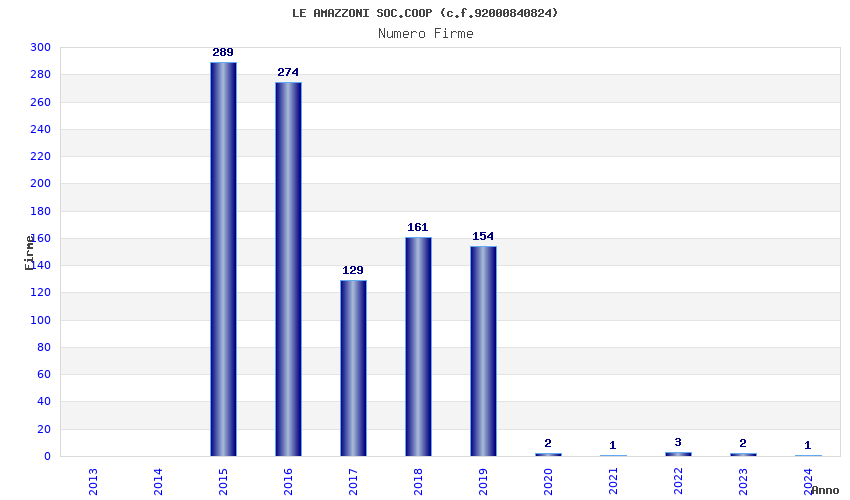 | Anno | Firme | Importi | Media | Naz. | Reg. | Prov. | Comu. |